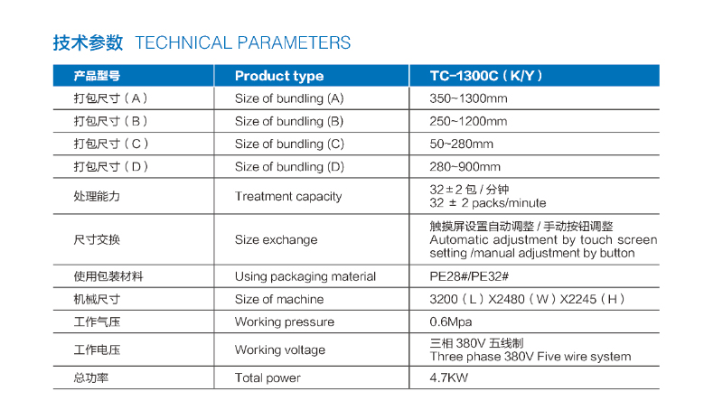 TC-1300C(K/Y)型高速展繩捆綁機送紙結(jié)構(gòu)為下壓搓入與皮帶輸送組合方式,其結(jié)構(gòu)緊湊、結(jié)合尾部拍齊裝置,傳送精準(zhǔn)高效,運行平;采用plc控制,人機界面調(diào)節(jié)參數(shù)配合雙十字開關(guān)微量修整調(diào)整,更易于操作,換單快。打包相關(guān)動力采用伺服電機驅(qū)動、國際知名品牌(FESTO/SMC)氣動元件,動作流暢,性能穩(wěn)定,節(jié)能。